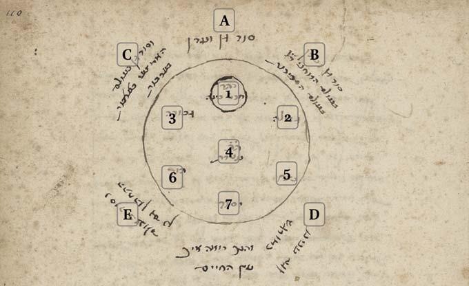 - Об Аврааме Абулафии см. многочисленные труды Моше Иделя, включая самый первый в 2020 году — Idel 2020a. Диаграммам Абулафии пока не уделялось значительного внимания, хотя Идель касался их в различных работах. См. также примечания к § 12 в приведённом ниже издании. О «Maʿarekhet ha-elohut» («Порядок Божества») — труде, который, несмотря на свою устойчивую популярность среди каббалистов, получал очень мало внимания в академической литературе, см.: Gottlieb 1976a, с. 257–343; Gottlieb 1976b; L. Chajes 2022 ↩︎