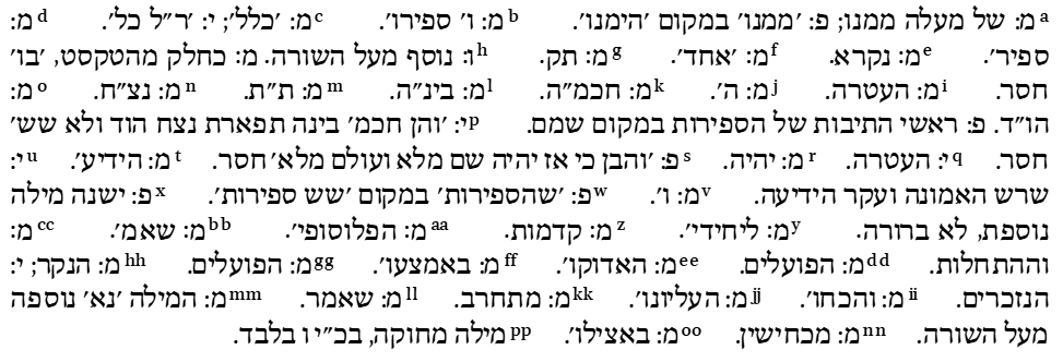 - Этот термин использовался в переводе Маймонида на иврит, выполненном тиббонитами, в «Путеводителе» II:26, а также в их переводе «Кузари» Иегуды ха-Леви, I:62. См. Klatzkin 1930, с. 63. ↩︎