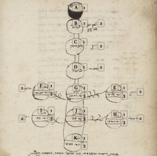- Диаграмма «Древо мудрости/науки», встречающаяся в этих рукописях, представляет собой не сфиротическое дерево, а визуализацию Sefer yetzirah, лишенную каббалистического, т. е. теософского содержания; см. Chajes 2022. ↩︎