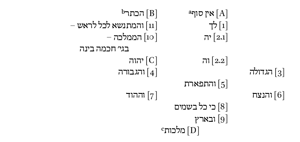 | 7 — (ve-ha-Hod) и великолепие (splendor) | 6 — (ve-ha-Netzaḥ) и вечность | |